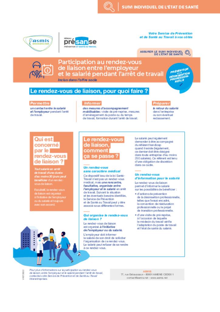 Pendant l’arrêt de travail entre le salarié et l’employeur pour les arrêts de travail dès un mois qui vise, si le salarié le souhaite, à préparer son retour dans l’entreprise et à l’informer des mesures d’accompagnement mobilisables.