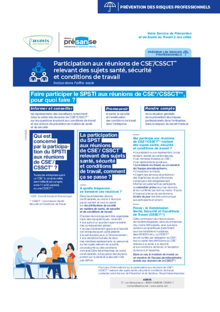 - Participation aux réunions du comité d'hygiène, de sécurité et des conditions de travail