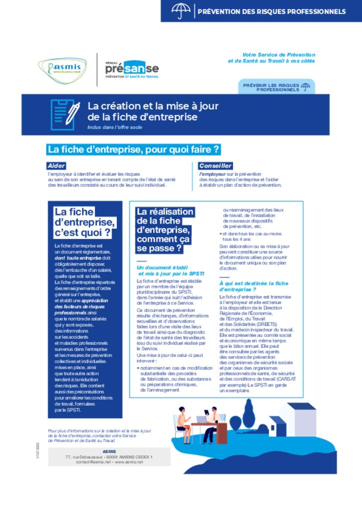 - Elaboration et mise à jour de la fiche d’entreprise